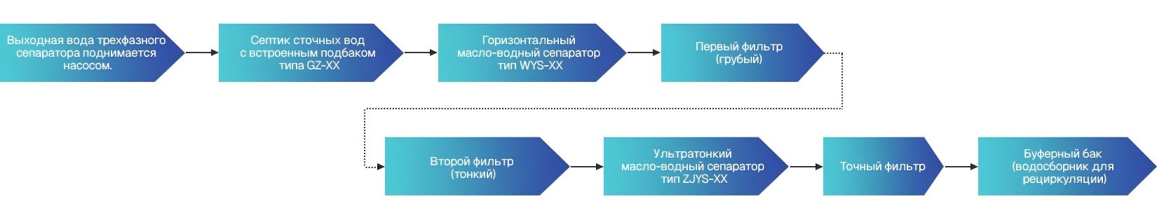 Научно-исследовательский отдел нашей компании разработал и спроектировал процесс удаления нефти и взвешенных твердых частиц из добываемой воды на нефтяных месторождениях, опираясь на процесс предварительной обработки нефти в нефтеперерабатывающих заводах. На основе исследований и анализа характеристик добываемой воды на нефтяных месторождениях и требований к воде для закачки, этот процесс отвечает требованиям к воде для закачки на низкопроницаемых нефтяных месторождениях.