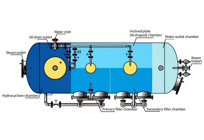 Крупнозерный фильтр из нержавеющей стали и полимерный коалесцентный фильтр предназначены для удаления масляных капель с различными размерами частиц, обеспечивая высокую степень удаления масла;
